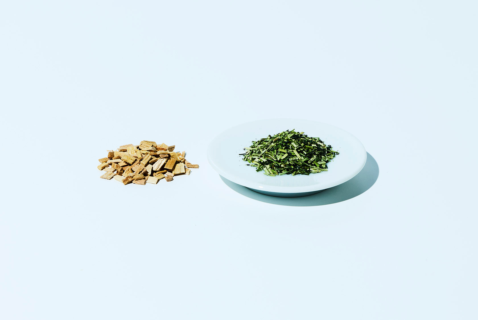 まろやかなコクのかぶせ茎茶に、ほんのり甘さ香るサクラの燻製香を纏わせました。かぶせ茶とは、摘みとり前に日光を遮って育てることで、豊かな旨みを蓄えたお茶のこと。そのかぶせ茶の茎の部分だけを使いました。まったりとした旨みと共に、サクラの香りが吹き抜けていきます。